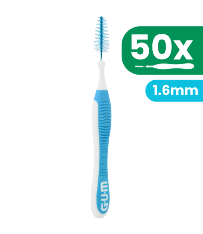 GUM Trav-Ler ragers zijn verkrijgbaar in verschillende maten. Van zeer smal tot breed. Zo is er altijd een maat die past bij uw gebit. De 1.6 mm variant is geschikt voor bredere ruimtes.