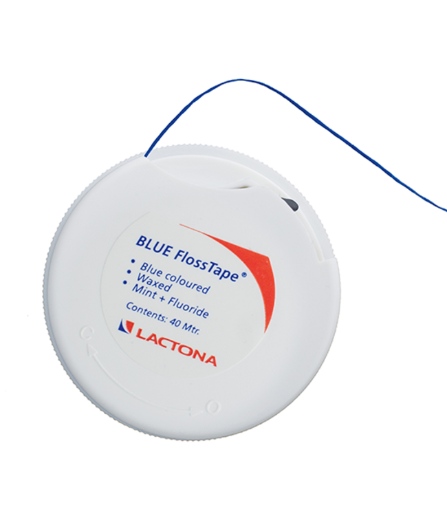 De Lactona Blue flosdraad is speciaal ontwikkeld voor kleine en smalle interdentale ruimtes. De tape is plat en iets breder dan traditioneel flosdraad. Hierdoor voelt het minder scherp aan langs het tandvlees. Tijdens het flossen waaiert de floss tape licht uit. Dit zorgt ervoor dat tandplak beter wordt meegenomen.