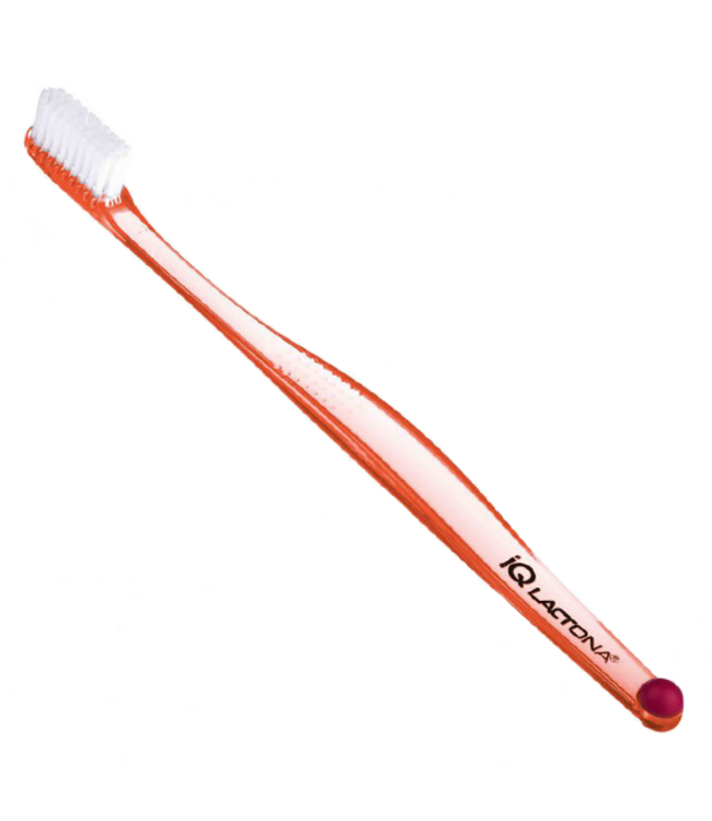 De Lactona iQ Extra Soft is een zachte handtandenborstel met vier rijen extra zachte filamenten. De specifieke plaatsing van de borstelharen zorgt voor een gelijkmatige drukverdeling tijdens het poetsen. Dit helpt tandplak effectief te verwijderen, zonder hard te hoeven drukken. De compacte borstelkop maakt het eenvoudig om ook achterin de mond goed te reinigen. Hierdoor is deze Lactona tandenborstel zeer geschikt voor mensen met gevoelige tanden en kwetsbaar tandvlees.