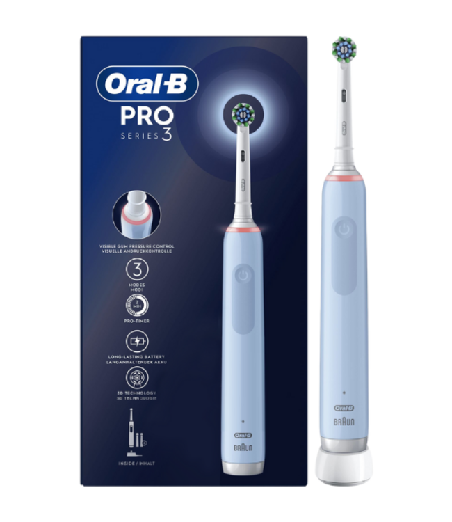 De Oral-B PRO 3 3000 Blue elektrische tandenborstel combineert eenvoud met slimme functies: