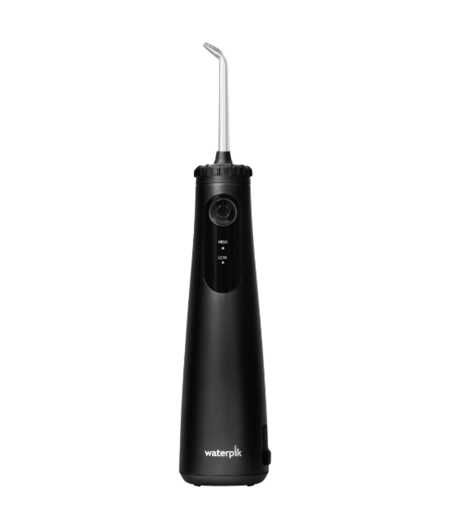 De zwarte black afwerking geeft deze monddouche Waterpik een rustige en moderne uitstraling. Het compacte formaat maakt hem ideaal voor kleinere badkamers. Ook op reis is deze draadloze waterflosser handig mee te nemen. Zo houdt u uw mondverzorging overal op peil.